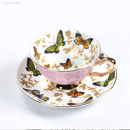 Porcelain Cups and Saucers with Butterflies or Floral Patterns