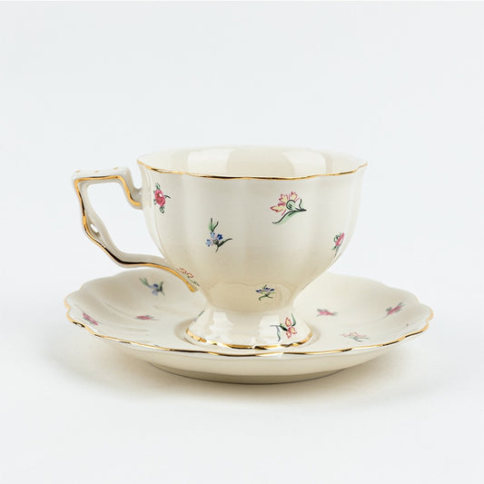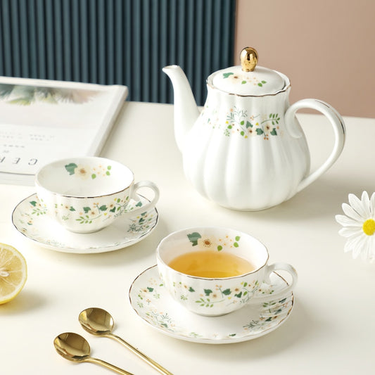 Ceramic Teapot Retro Flowers with Cup and Saucer