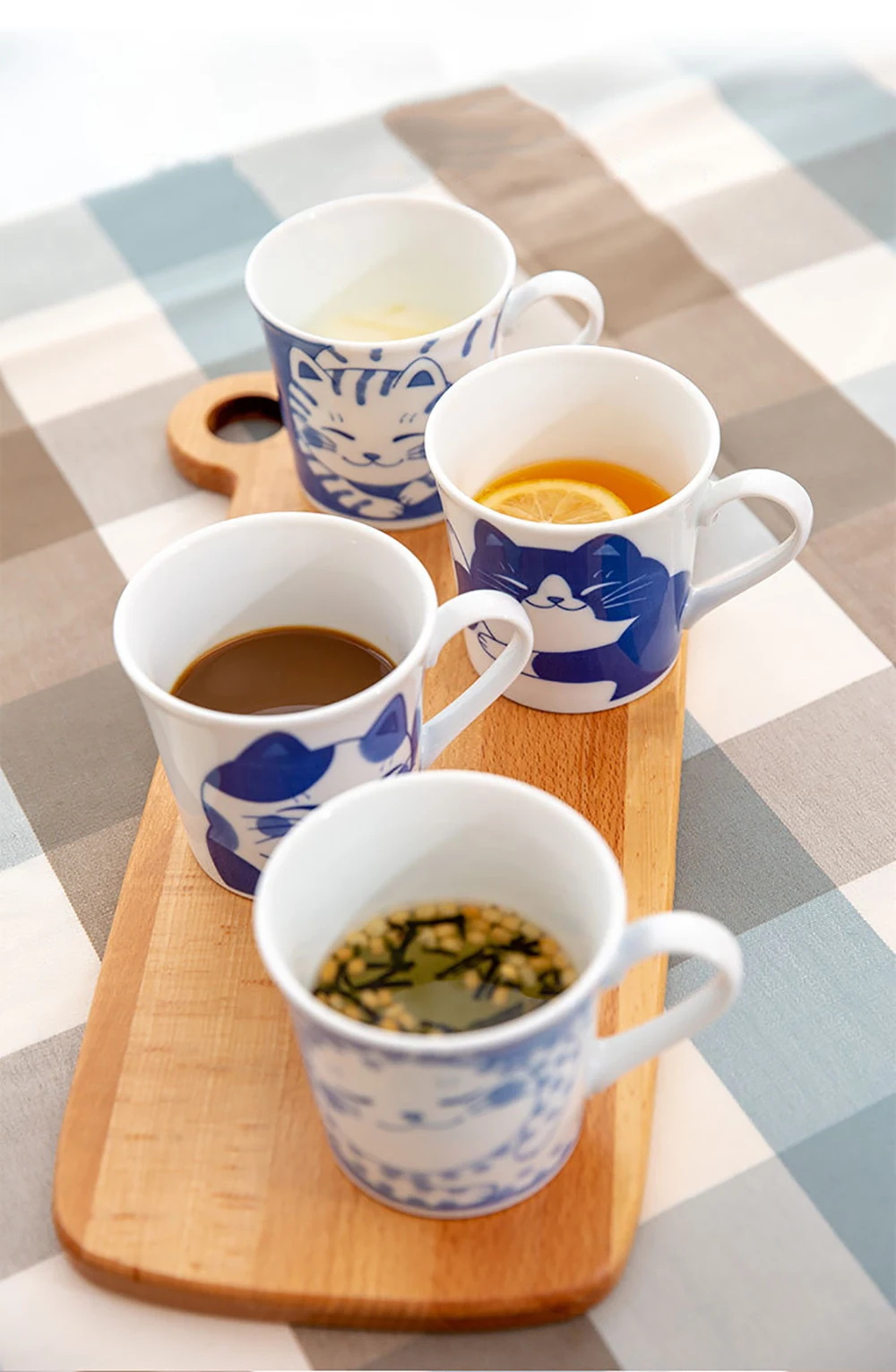 In Japanese culture, the cat is a very auspicious animal. It has the meaning of nobility, fortune and hospitality. So in many daily necessities, cat patterns are very common. This cup uses four different cat patterns.